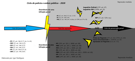 O conjunto de leis que regulamenta o ciclo de polícia e ordem pública brasileiros deve ser analisado de forma sistêmica e sistemática, afinal, como é característico do ordenamento legal brasileiro, muitas vezes, as leis são criadas e publicadas descontextualizadas, cabendo ao operador do direito o árduo e complexo trabalho de reuni-las e interpretá-las, a fim de dar operacionalidade, e em última instância, fazer valer a supremacia do interesse público, isto é, a de ver o cidadão seguro.